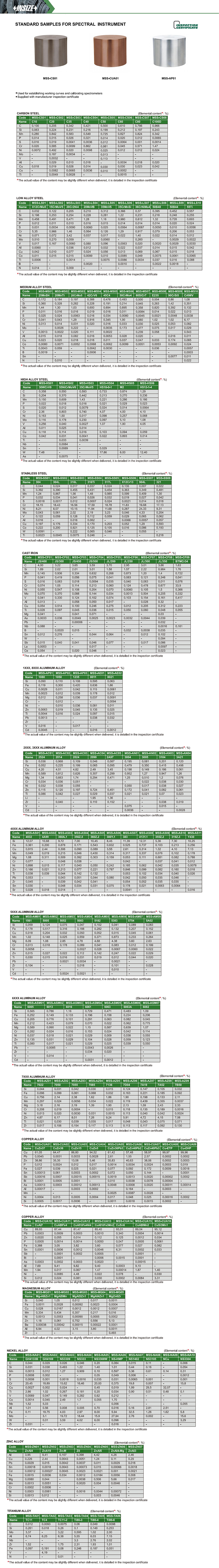 MSS-Series standard samples for spectral analysis
