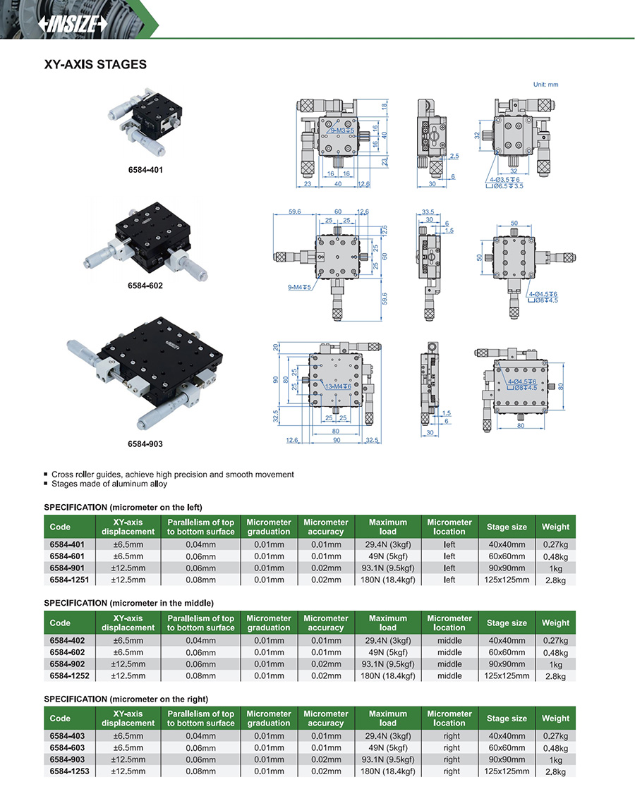 6584-901 0.06mm ±12.5mm 0.01mm 0.02mm 90x90mm