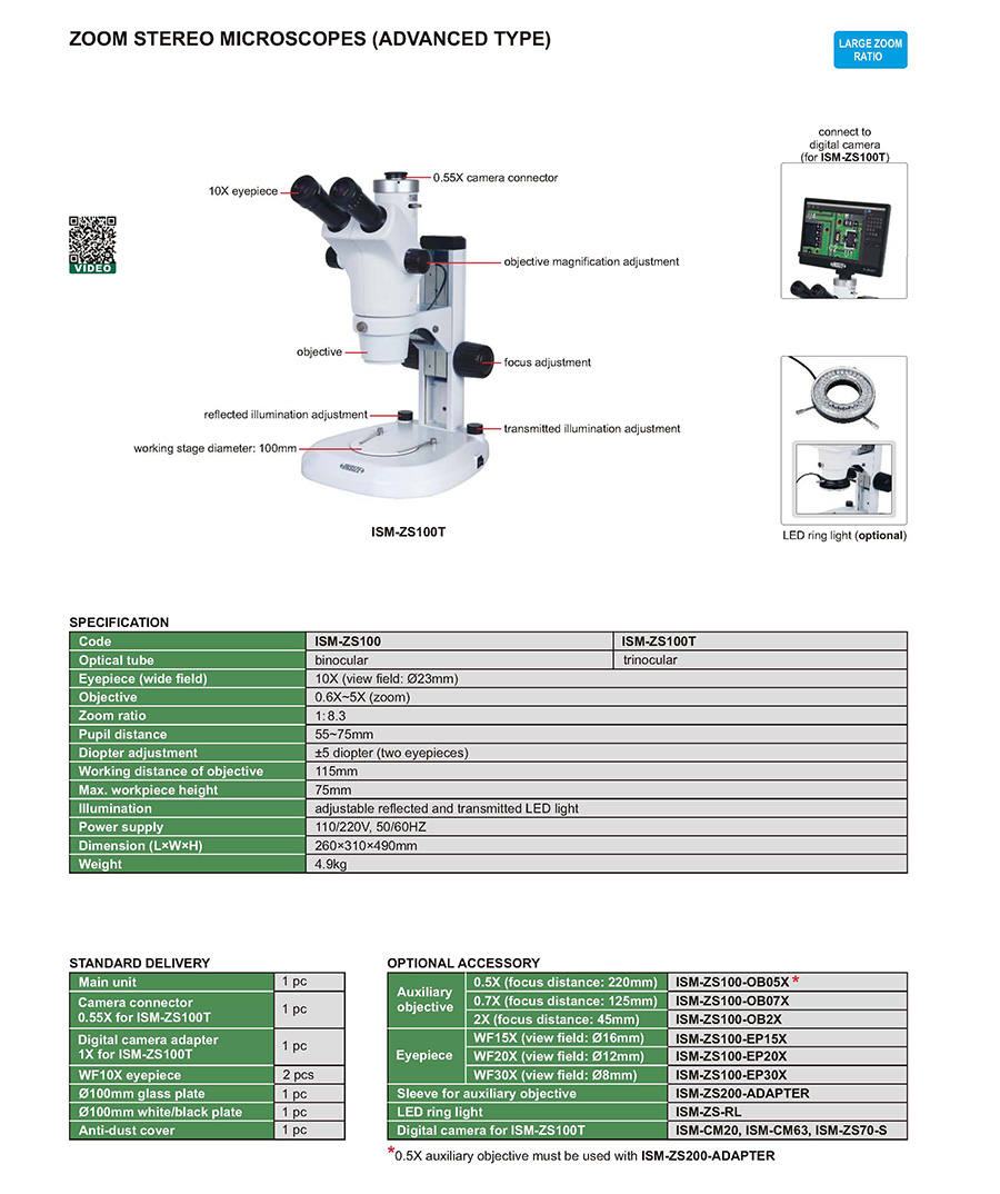 ISM-ZS100T 10X 0.6X~5X trinocular 1: 8.3 75mm