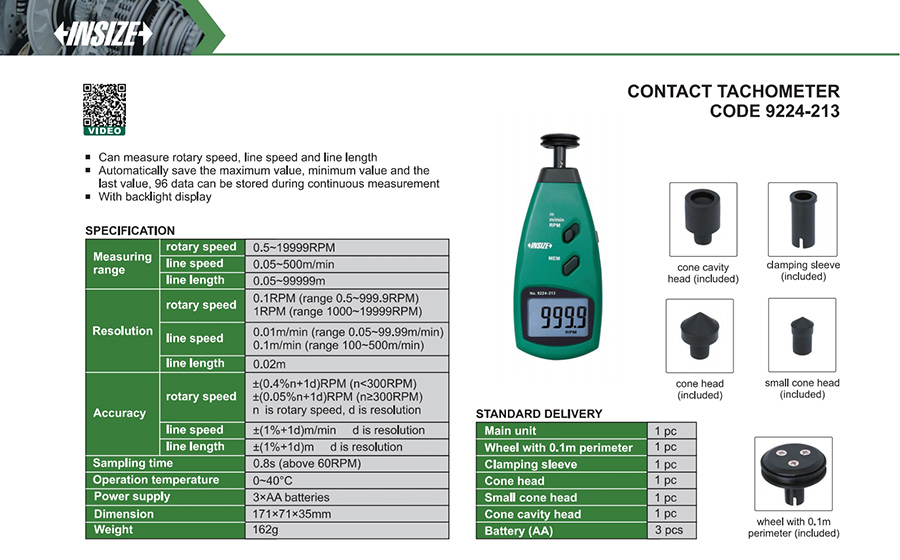 9224-213 Contact 0.5~19999RPM 0.05~500m/min