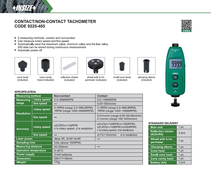 9225-405 Contact 0.5~19999RPM 0.05~500m/min