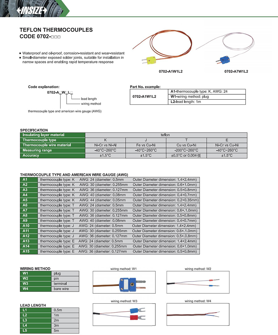 0702-□□ K thermocouple -40°C~260°C ±1.5°C