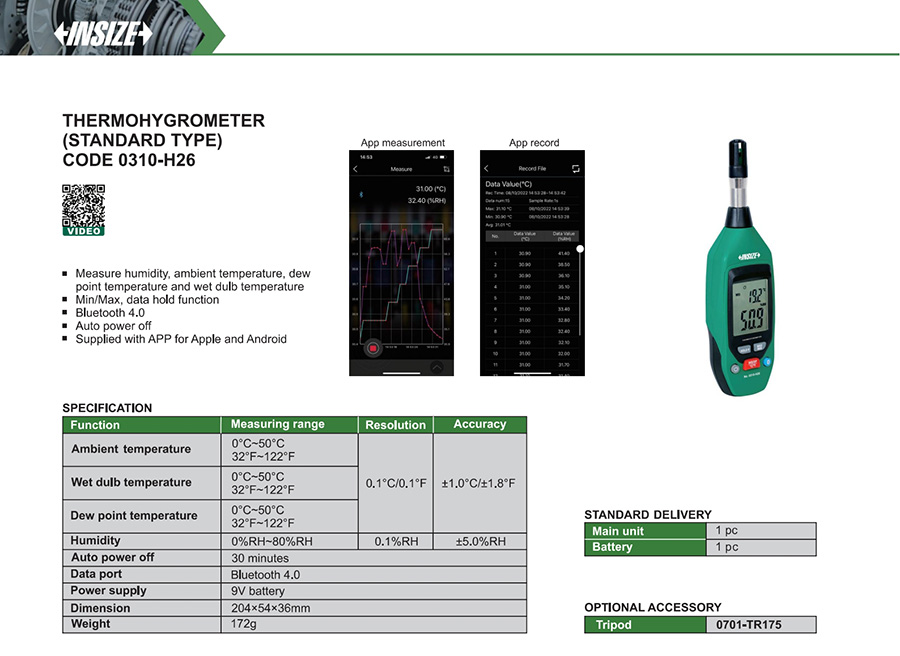 | 0310-H26 | digital | external | ±1.0°C/±1.8°F | 0%RH~80%RH | ±5.0%RH | yes | yes | 0°C~50°C/32°F~122°F |