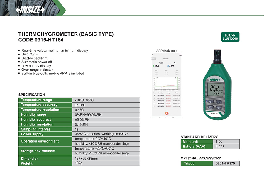 0315-HT164 digital external ±1.0°C 0%RH~99.9%RH ±5.0%RH yes -10°C~60°C
