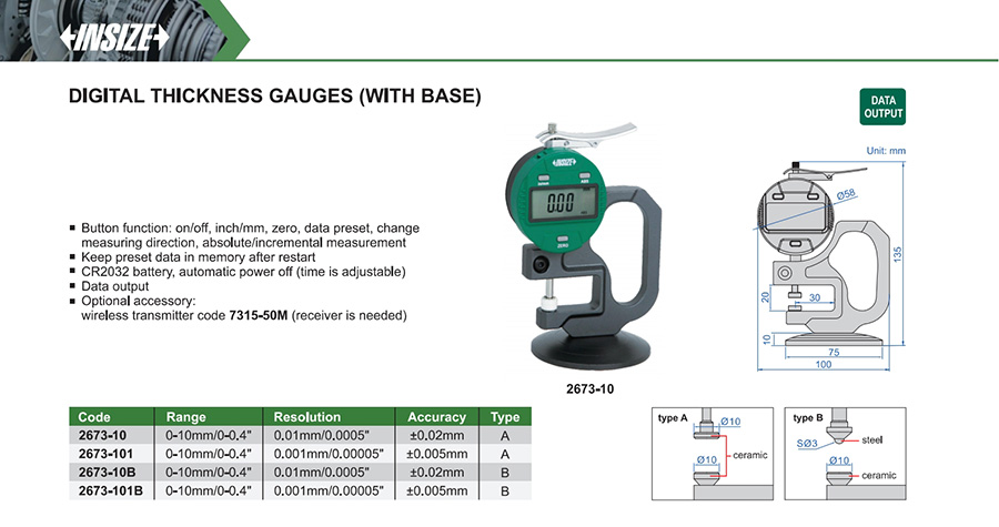 | 2673-10B | 0-10mm/0-0.4" | ±0.02mm | 0.01mm/0.0005" |