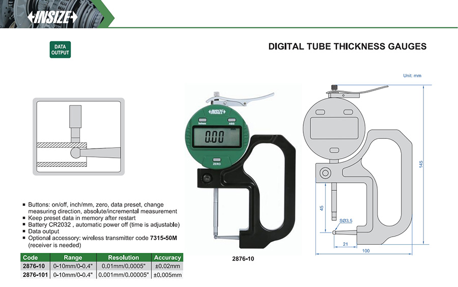 2876-10 0-10mm/0-0.4" ±0.02mm 0.01mm/0.0005"