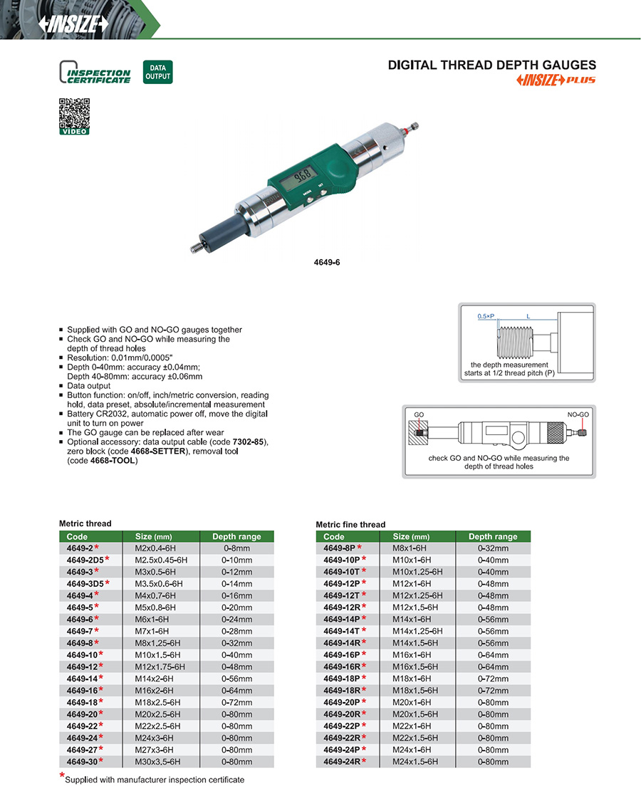 | 4649-24 | ±0.06mm | 0.01mm/0.0005" | 0-80mm | M24x3-6H |