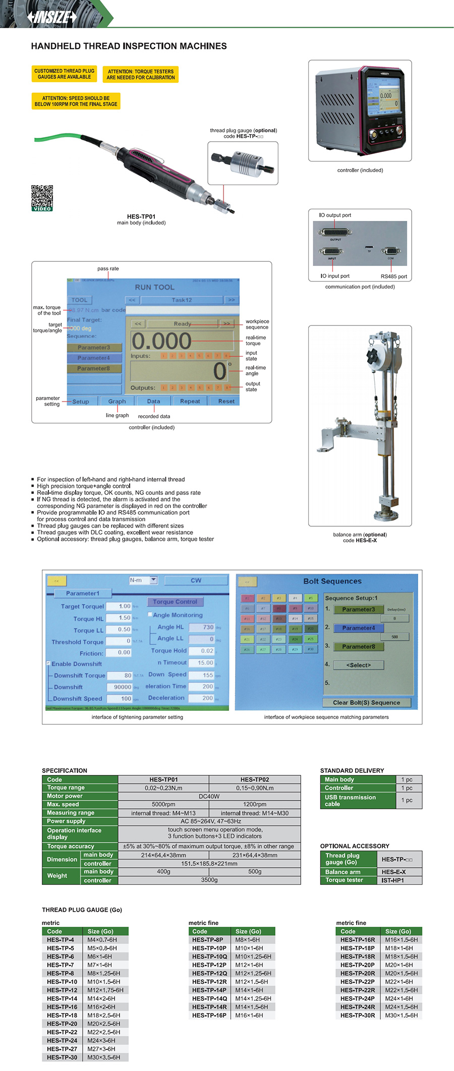 HES-TP01 internal thread: M4~M13 0.02~0.23N.m