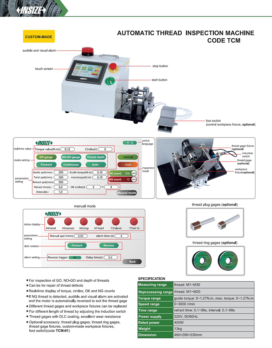 TCM thread: M1~M30 guide torque: 0~1.27N.m, max. torque: 0~1.27N.m