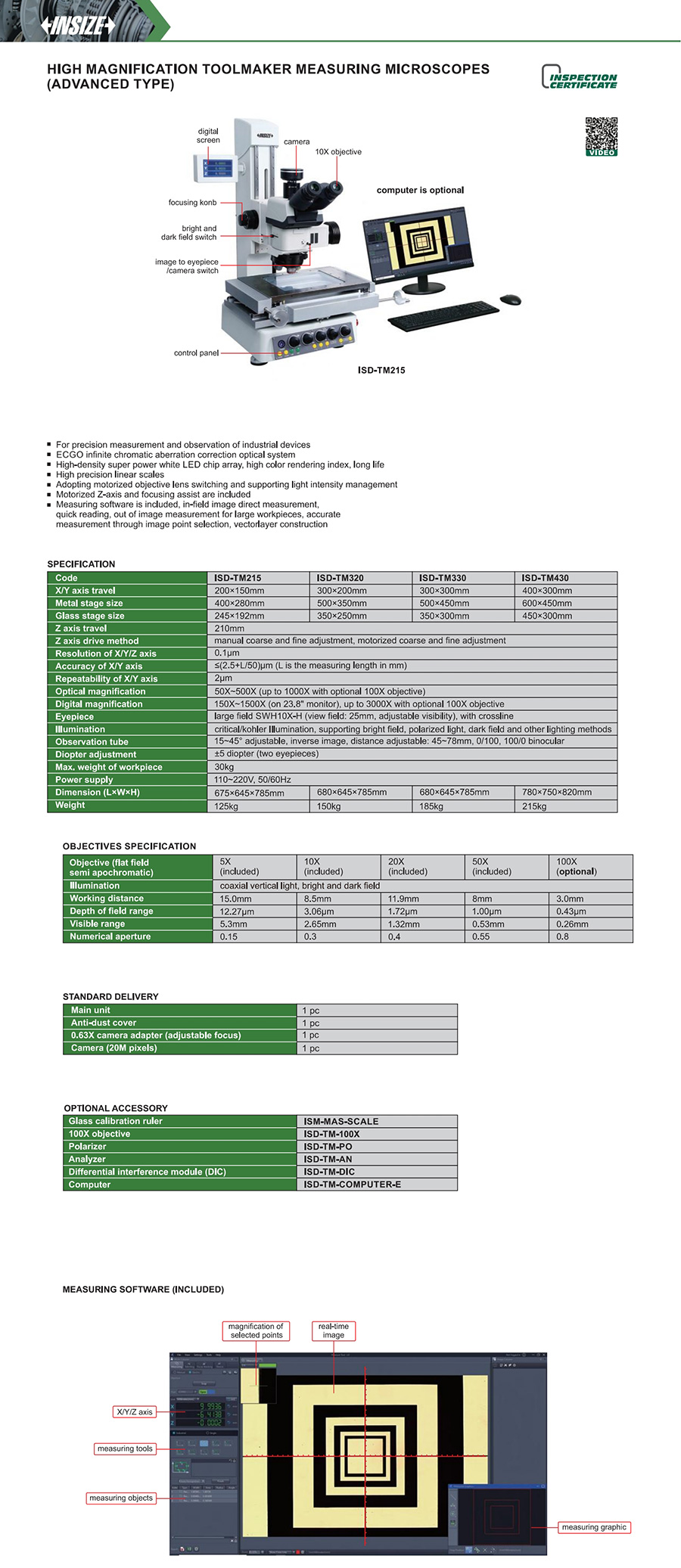 ISD-TM215 ≤(2.5+L/50)μm 0.1μm 200×150mm 210mm
