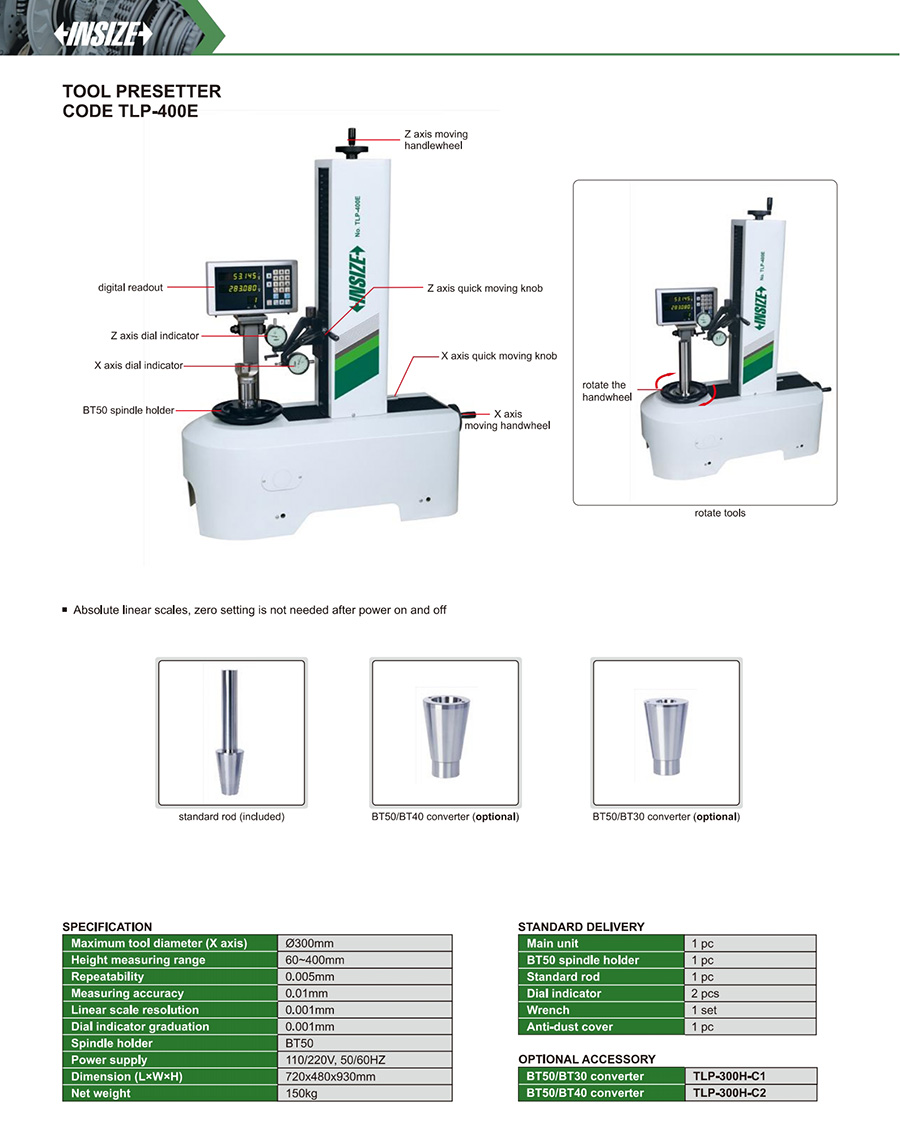TLP-400E 0.01mm 0.005mm Ø300mm 60~400mm 0.001mm