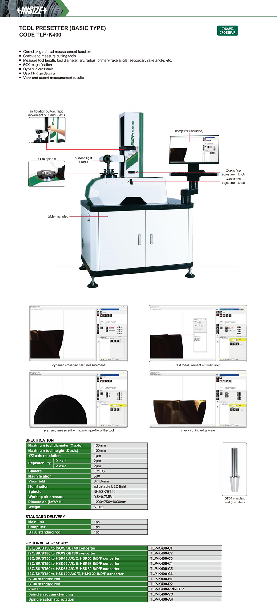 | TLP-K400 | 400mm | 400mm | 2μm | 2μm | 1μm |