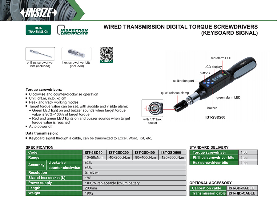 IST-2SD200 digital 40~200cN.m wired transmission (keyboard signal) digital display