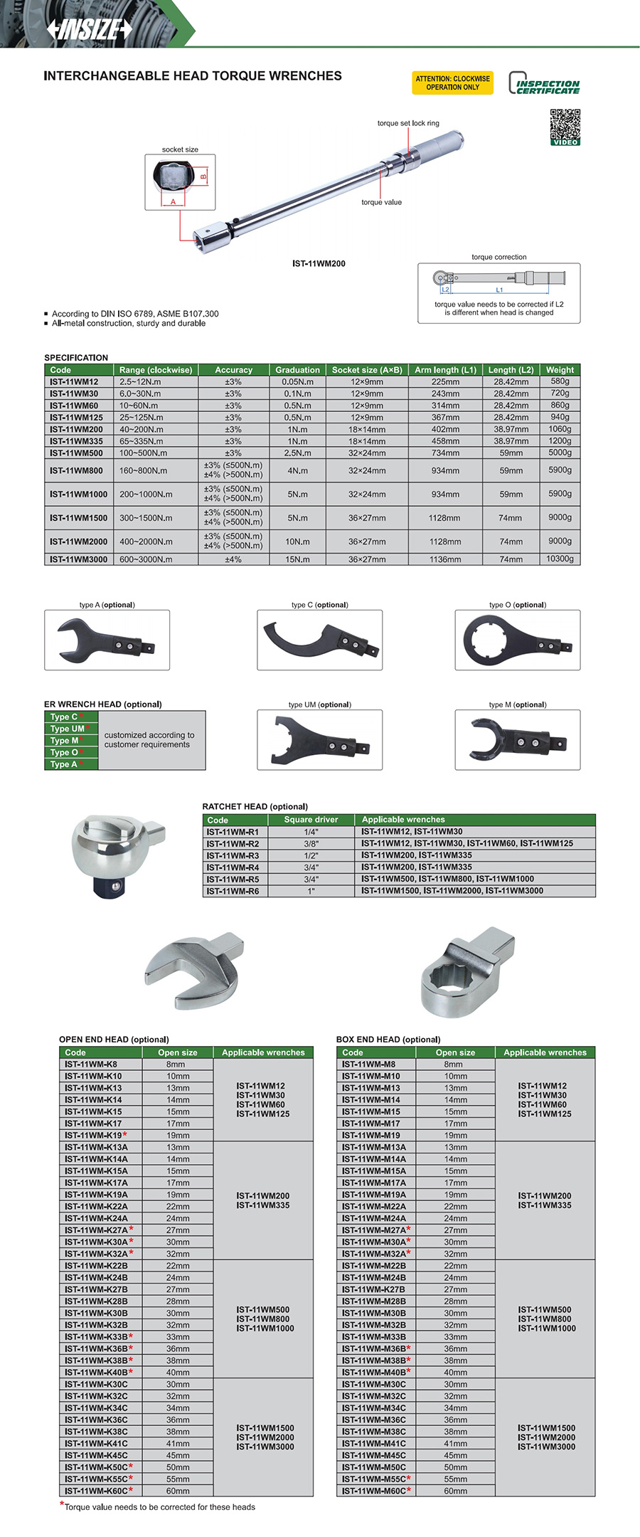 IST-11WM335 mechanical preset 65~335N.m engraved-line interchangeable head
