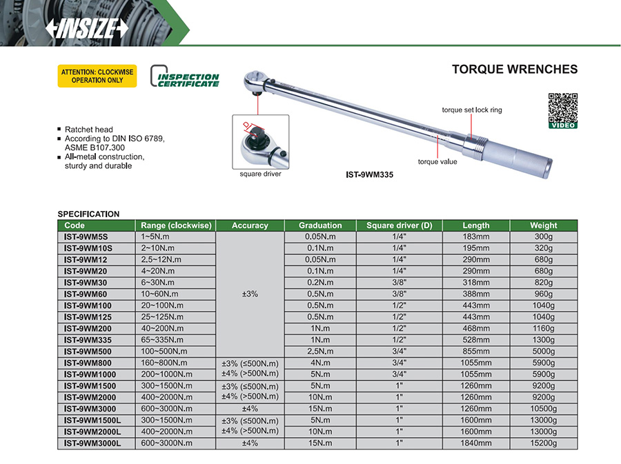 IST-9WM335 mechanical preset 65~335N.m engraved-line fixed ratchet head