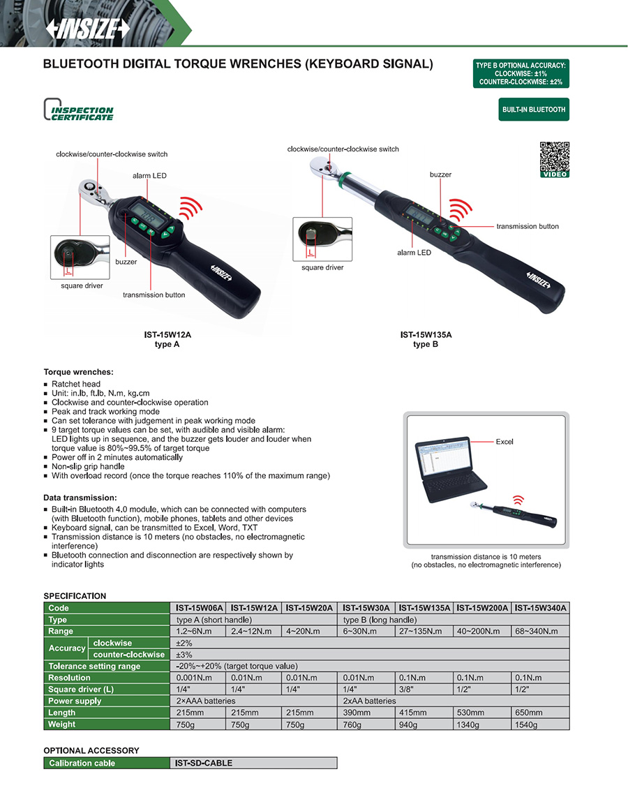 IST-15W200A digital 40~200N.m wireless transmission (keyboard signal) digital display fixed ratchet head