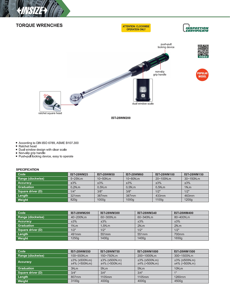 IST-28WM1000 mechanical preset 200~1000N.m window design fixed ratchet head