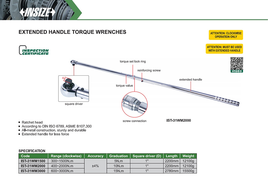 IST-31WM3000 mechanical preset 600~3000N.m engraved-line fixed ratchet head