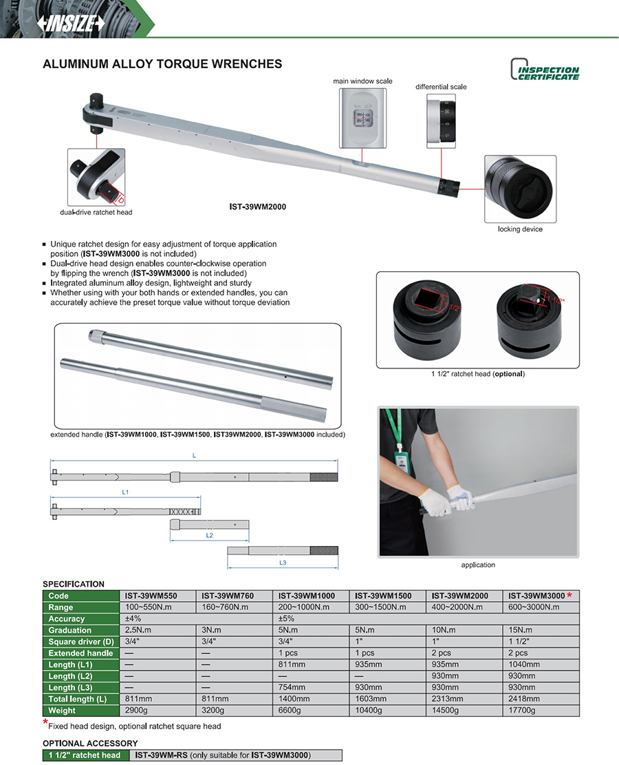 IST-39WM3000 mechanical preset 600~3000N.m window design dual-driver ratchet head