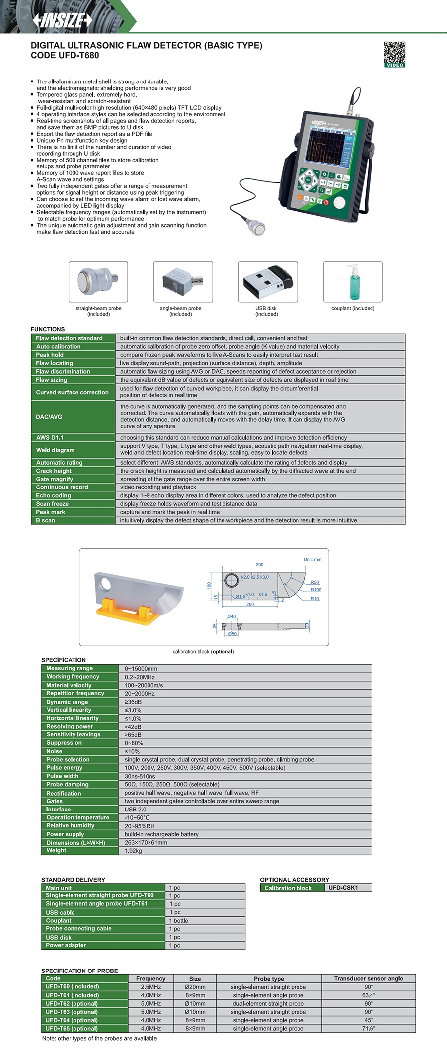 UFD-T680 0~15000mm 1.0~20MHz ≤3.0% ≤1.0% ≥36dB >42dB >65dB