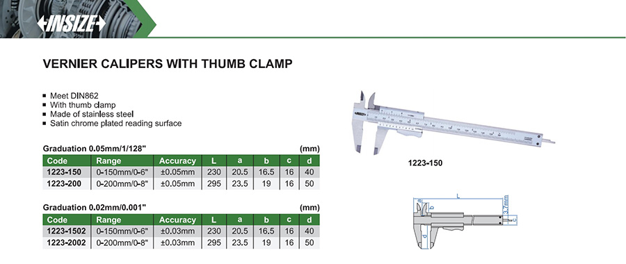 1223-150 0-150mm/0-6" ±0.05mm 0.05mm/1/128"