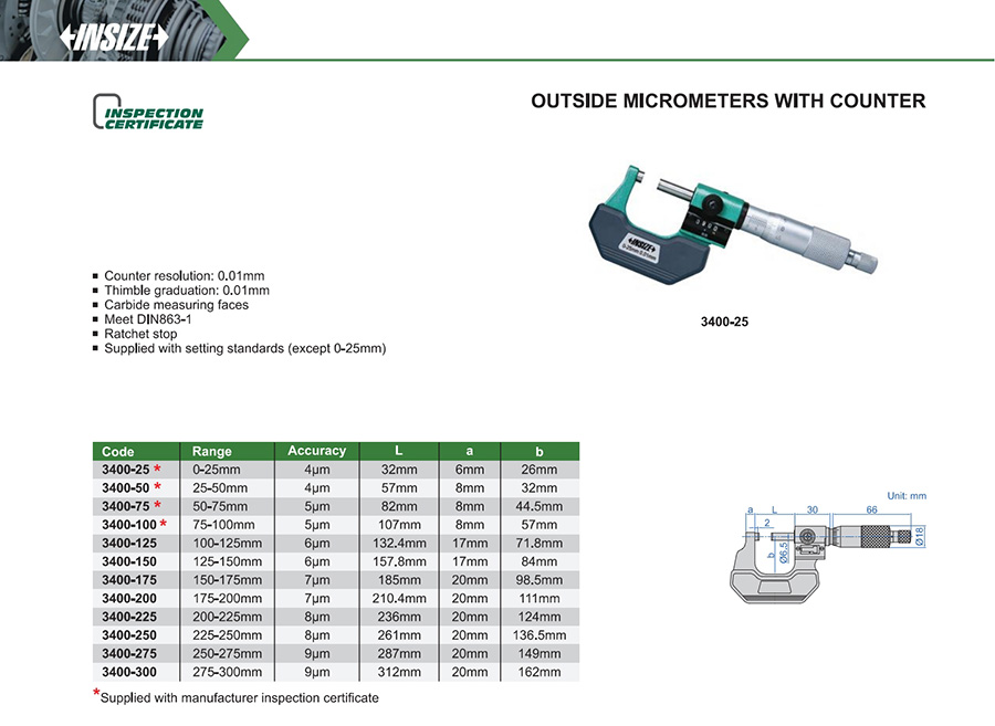 3400-25 0-25mm 4μm 0.01mm
