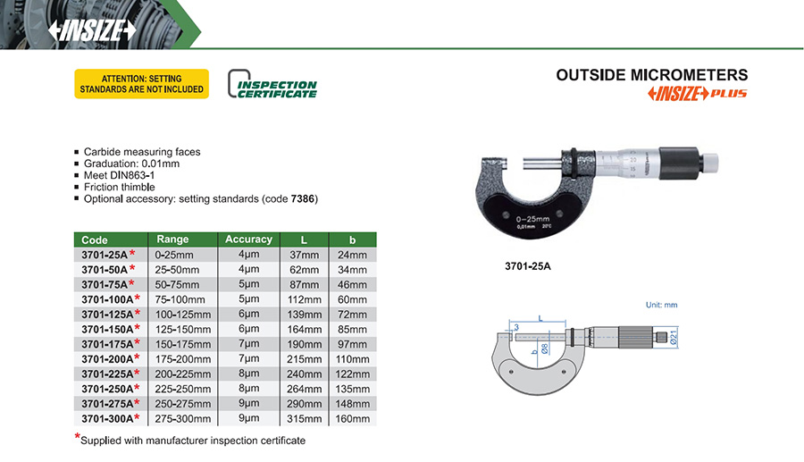 3701-25A 0-25mm 4µm 0.01mm