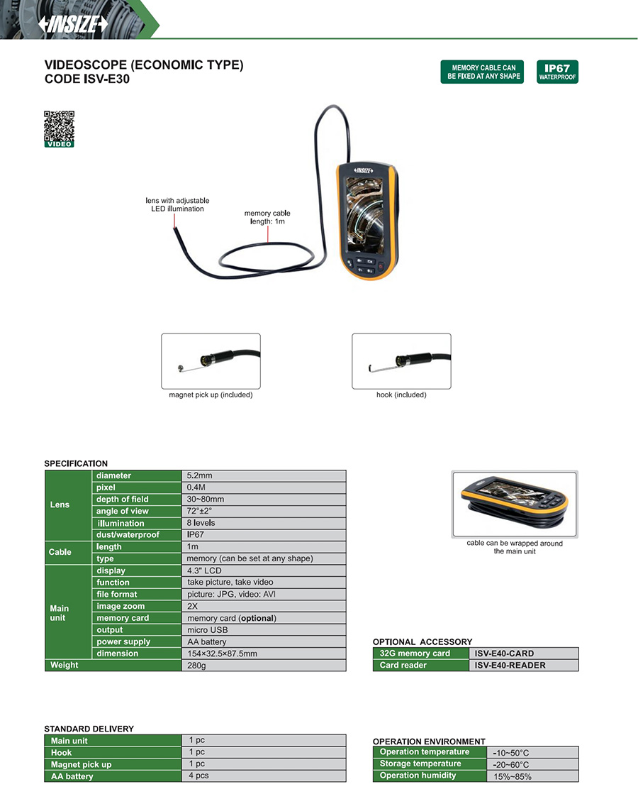 | ISV-E30 | 0.4M | memory (can be set at any shape) | front view | 5.2mm | 1m | no | front LED |
