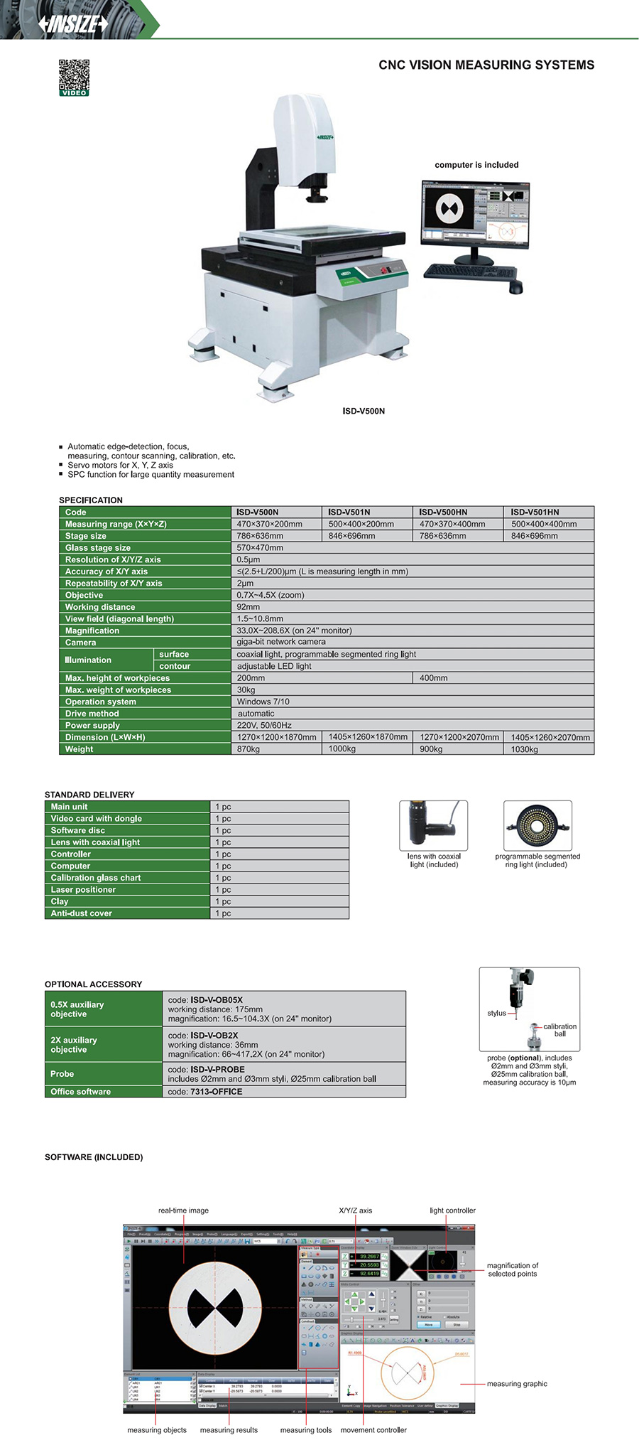 ISD-V501N 500×400×200mm ≤(2.5+L/200)µm 0.5µm 2µm 33.0X~208.6X (on 24'' monitor) 30kg