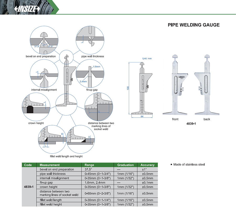 4839-1 0-60mm (0~2-3/8") ±0.5mm 1mm (1/16") distance between two marking lines of socket weld