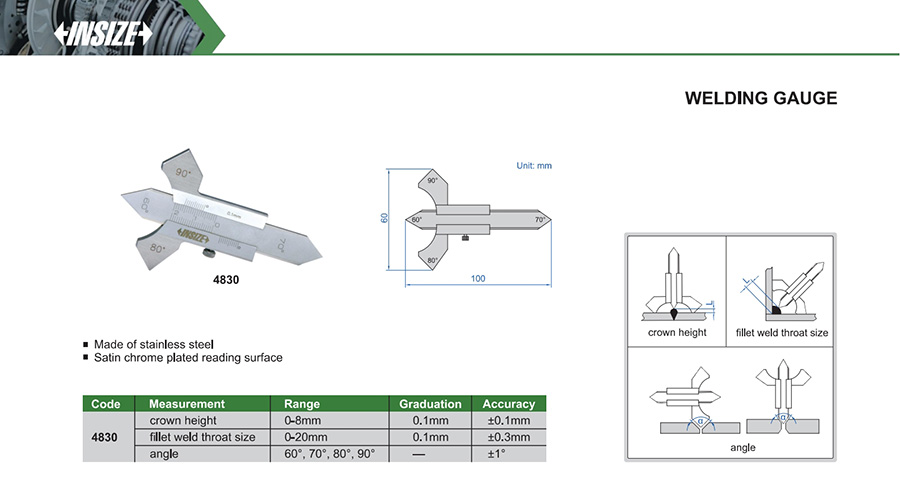 | 4830 | 0-20mm | ±0.3mm | 0.1mm | fillet weld throat size |